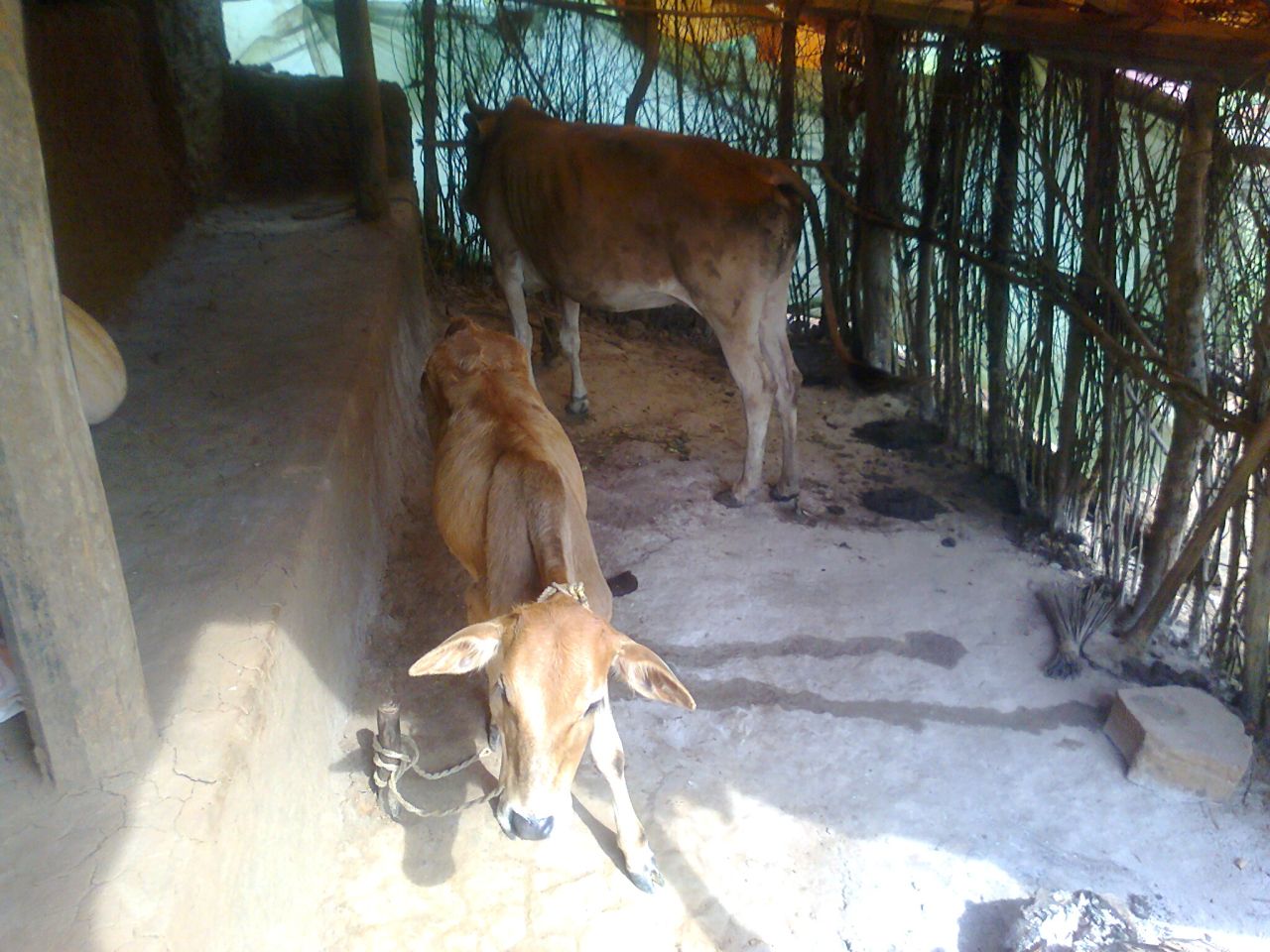 Despite being over 80 years old at this time, in the morning Baba proceeded to cook for us on his simple mud stove. Even in this harsh remote location he was personally taking care of a mother cow and her calf, as he wanted to perform daily goseva. The baby bull calf in the photo above (Vasu) was later given to us by Vishwanatha Baba, and he continues to live in our goshala.