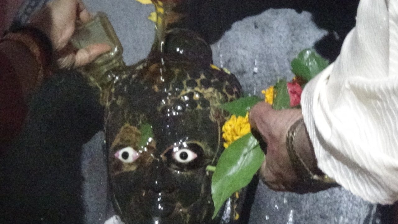 As with all temples, this temple compound has several subsidiary chambers with other deities. The one that we want to look at today is the Kala Bhairava temple which is located on the southern side of the temple compound. What is unique about this Kala Bhairava is that he is actually a left over deity of Lord Buddha who somehow survived the destruction of various invaders throughout history.