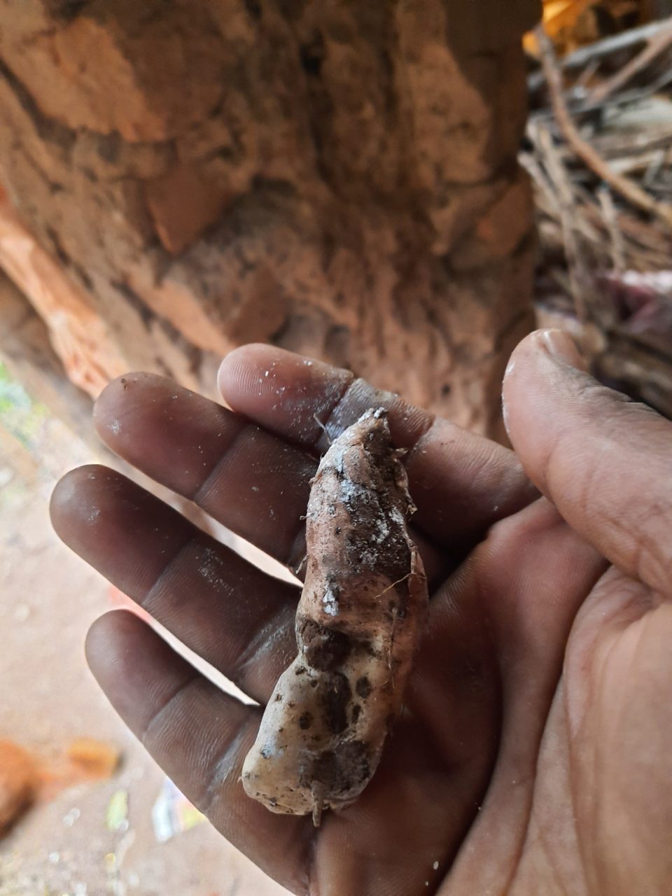 He told me, “This is jungle pita aloo (bitter potato). We used to live by foraging this from the forest. To eat it you have to first slice it and then soak it over night in a running river, and that will draw out all the bitterness. Afterwards you can cook it the next day and eat it.”