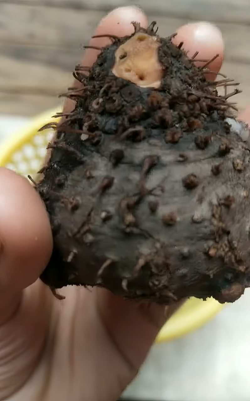 Once in the early days of visiting Chakratirtha Baba before much of the public had started coming to his ashram he showed me a root that was covered in spikes, round like a small potato. It looked like something you would expect to see in hell, covered in spiny spikes.