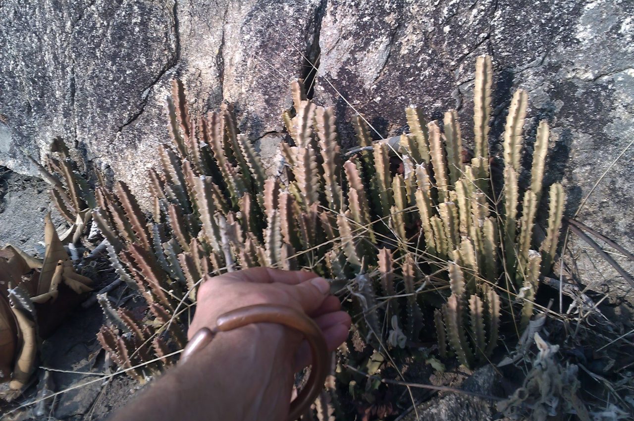 Another wild edible plant Dayalu Baba introduced me to back in 2012, was a type of edible cactus. This was on the top of a granite boulder mountain near his ashram called Ratna Giri. The entire mountain is a giant block of granite, with very little dirt on the top. As such there is no water available, nor food.
