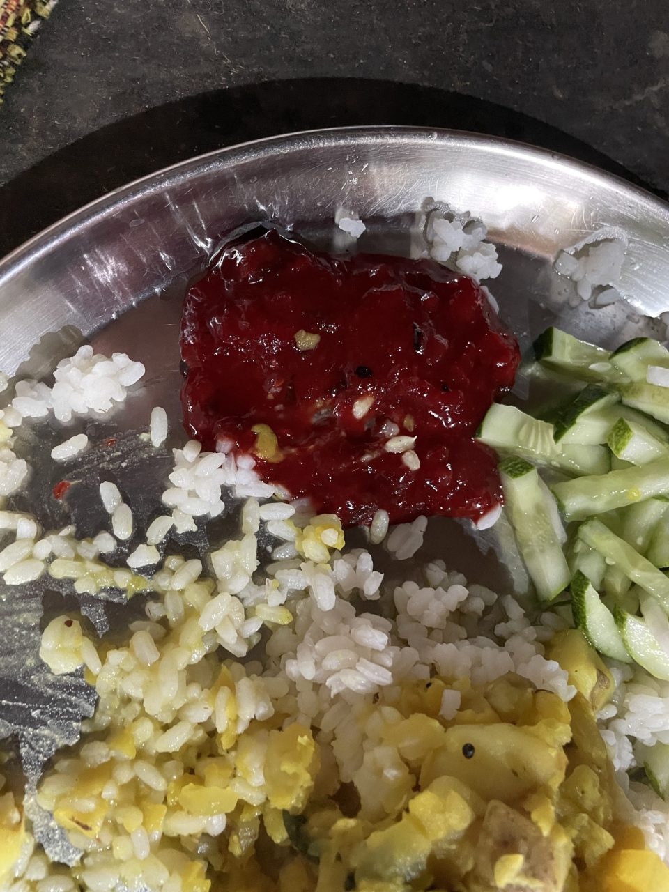 On that particular day Dayalu Baba used it to make a sweet and sour chutney. It was a bit different than the regular chutney (called khata) I am used to (usually either mango or tomato chutney, which are watery). This was very gooey and had no unique flavor as mango chutney has. Personally I didn’t really like it, but it was edible and not unpleasant.